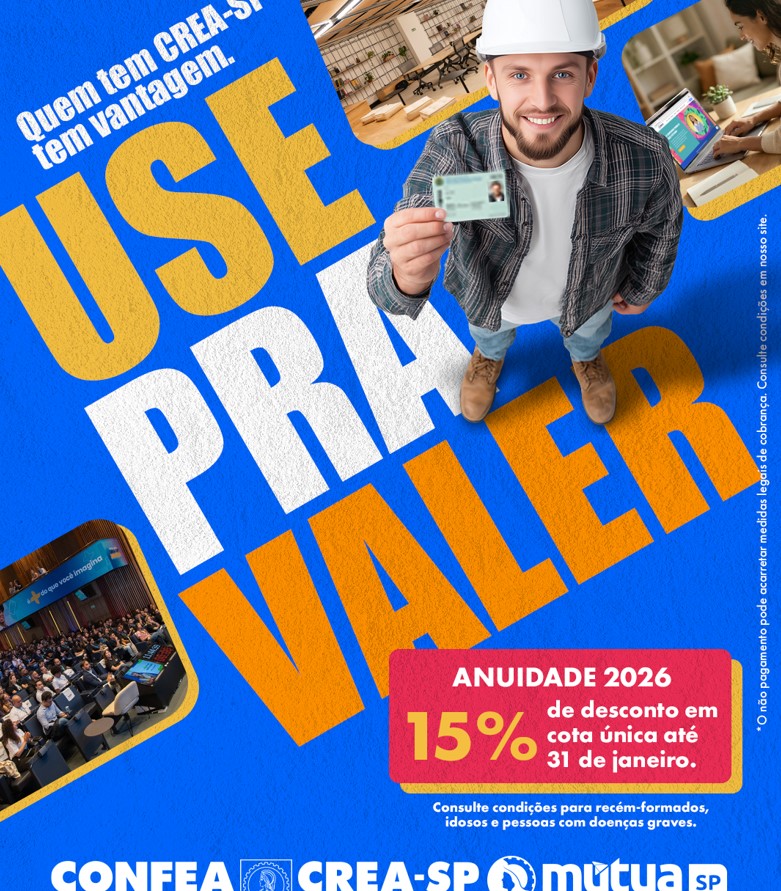 A anuidade 2026 do CREA-SP já está disponível com 15% de desconto em cota única até 31 de janeiro.